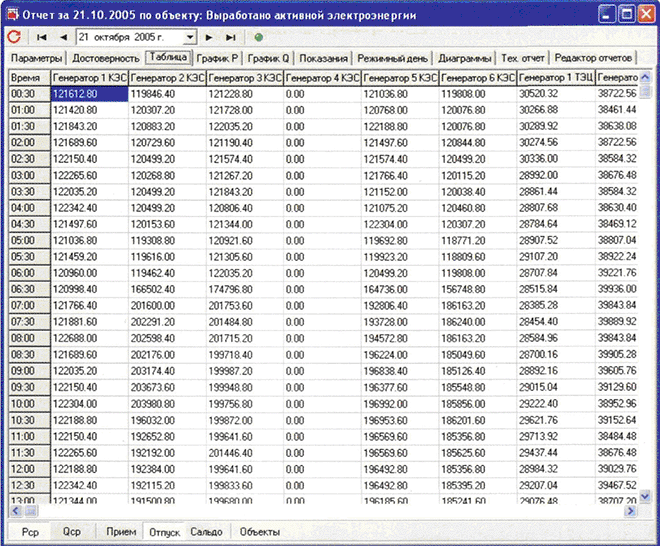 - формирование баз данных в формате dbf по учету электроэнергии (30-минутные значения) и оперативному контролю (1 мин. значения),