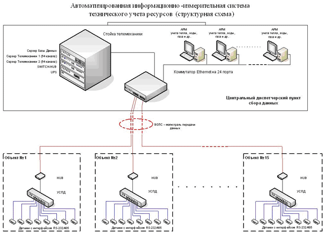Описанная выше архитектура построения АСУНЭ приемлема для относительно простых объектов учета. Для более сложных объектов система позволяет реализовать многоуровневые системы контроля и учета неэлектрических энергоносителей с использованием распределенной обработки информации.