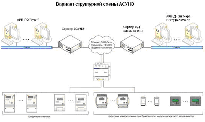 Вариант построения схемы АСУНЭ представлен на следующем рисунке: